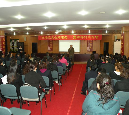 2010年4月1日,天壇家具“金牌店長 王牌導購” 國際•AST第78屆訓練營在北京金隅集團黨校成功落下帷幕,來自天壇家具市場營銷人員、優秀經銷商、金牌店長、王牌導購導購員共100多人參加了此次訓練營。此次訓練營是天壇家具與北京國富縱橫國際•AST商學院的第二次合作。在專業次合作成功的基礎上面,國際•AST商學院的導師根據學員們的現場反應能力做了更多的更有針對性,更有實效性的調整,使此次訓練營達到了更加完美的地步。